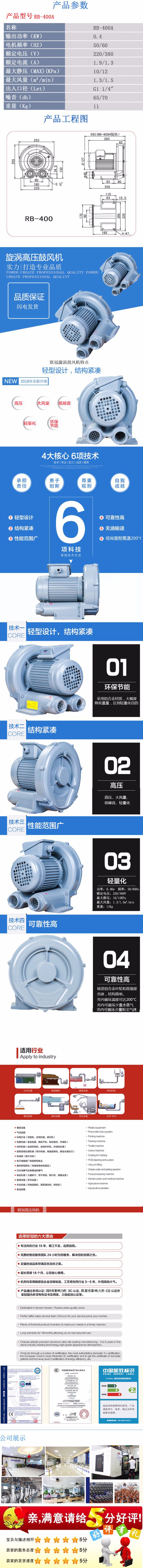 产品详情:一般而言情形下,高压风机有着以下特性:1.具吹吸的双重机能,一台机械可同时用以两个目的。可用以吸气或吹气;2.几乎无油或无油运行,输出空气洁净。3,与离心风机和中压风机相比之下,压力要高得多,一般而言是离心风机的十倍以上;4.如果泵体是总体压铸的,并且使用了防震的安装脚,那么这对于安装基本非常最主要。要求也很低,甚至不需要固定脚就可以正常运行,非常简便,节约了安装成本和安装周期;5.与同类风扇相比之下,其运行噪声更低。超静音型高压风机:6,免维护使用;它的易损件只有两个轴承,在保修期内基本并未保障;7.高压风扇的机器磨损非常小,因为除了轴承外并未其他机器接触构件。因此,使用寿命当然很长,只要在正常使用条件下,3至5年根本没有问题。